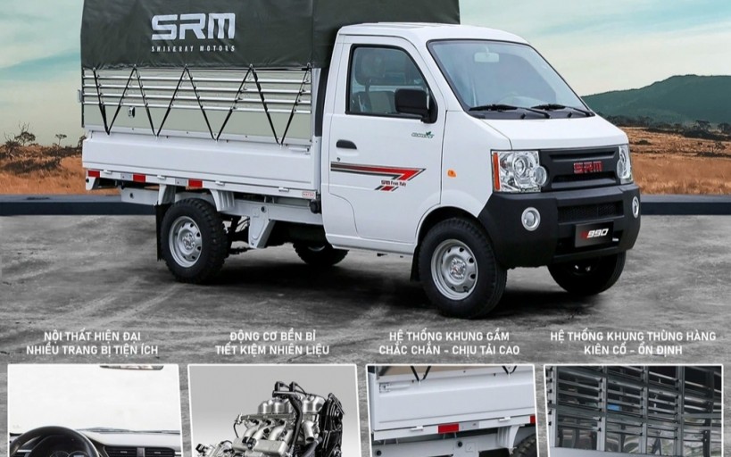 Xe tải SRM K990 là dòng xe tải nhỏ 1 tấn của hãng SRM có kích thước thùng nhỏ gọn chở hàng dễ dàng cho mọi địa hình, với thiết kế bên ngoài cực kỳ vuông vắn và nhỏ gọn giúp lưu thông hàng hóa dễ dàng.